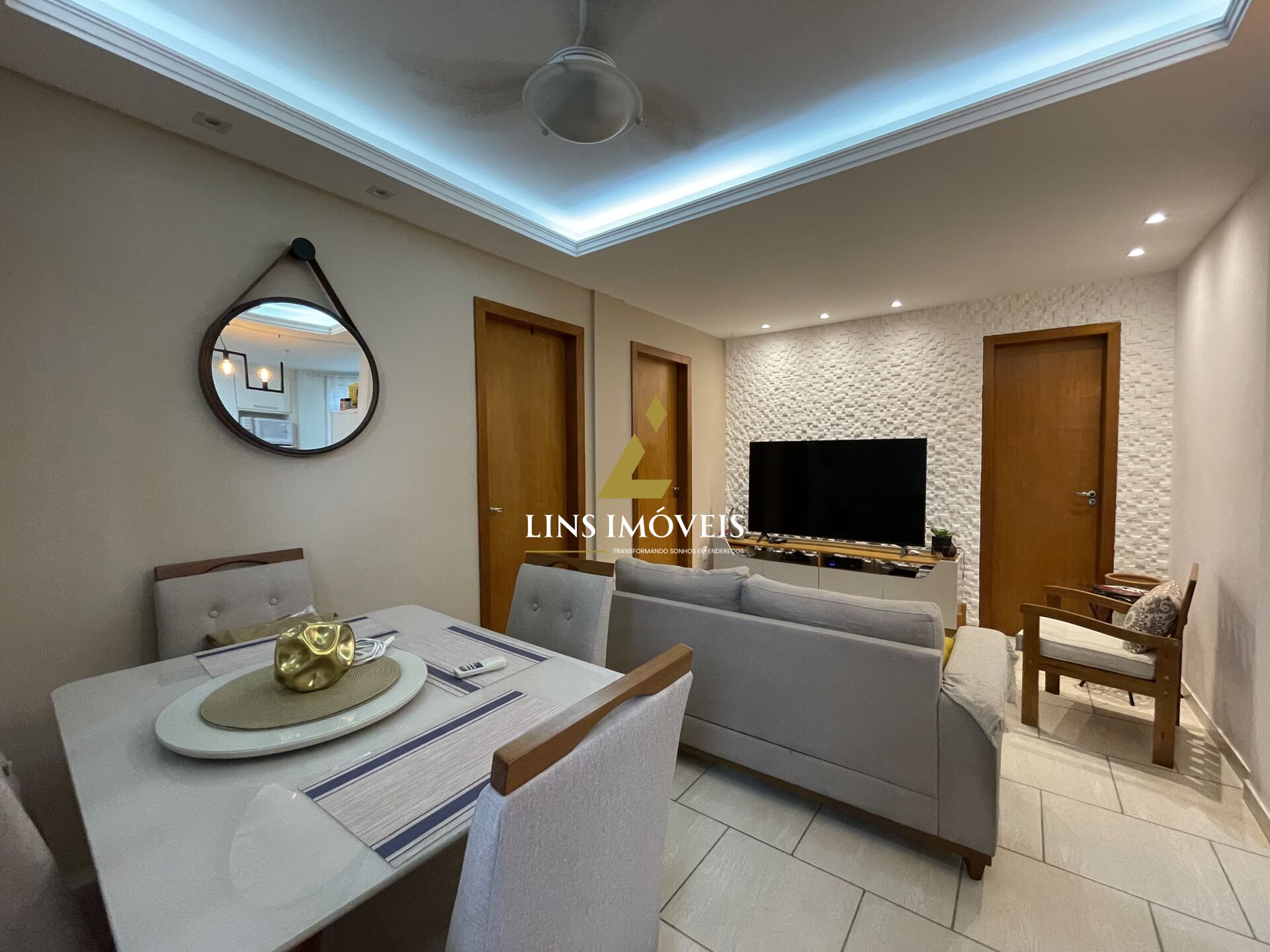 O imóvel possui dois quartos, sendo um deles equipado com armários planejados, Splits, persianas e ventiladores, garantindo maior conforto. A cozinha americana moderna, integrada aos outros ambientes, está totalmente revestida até o teto, assim como o banheiro, que já conta com blindex instalado.