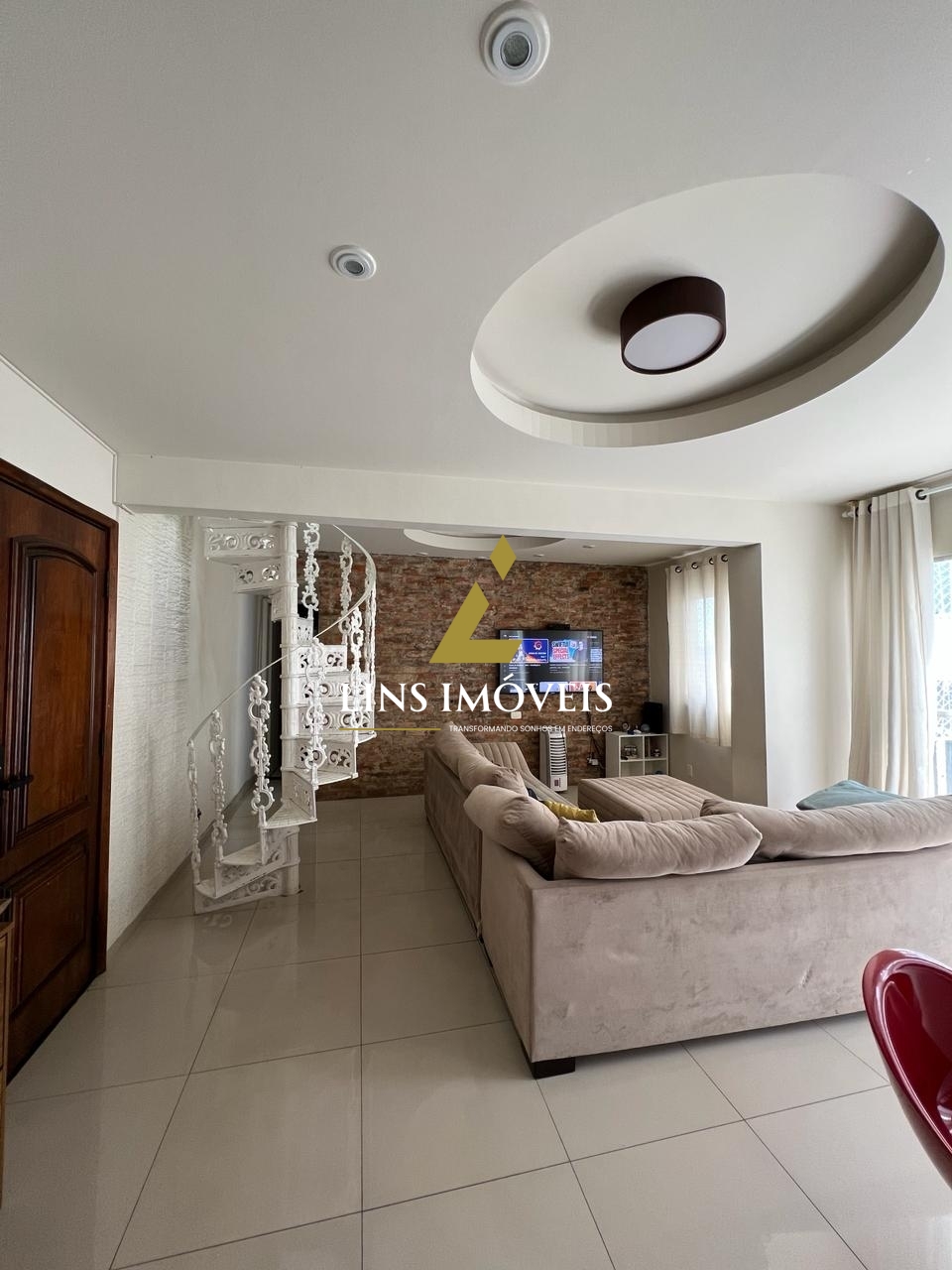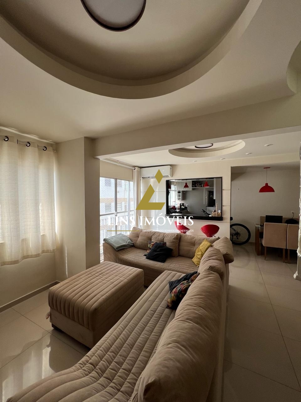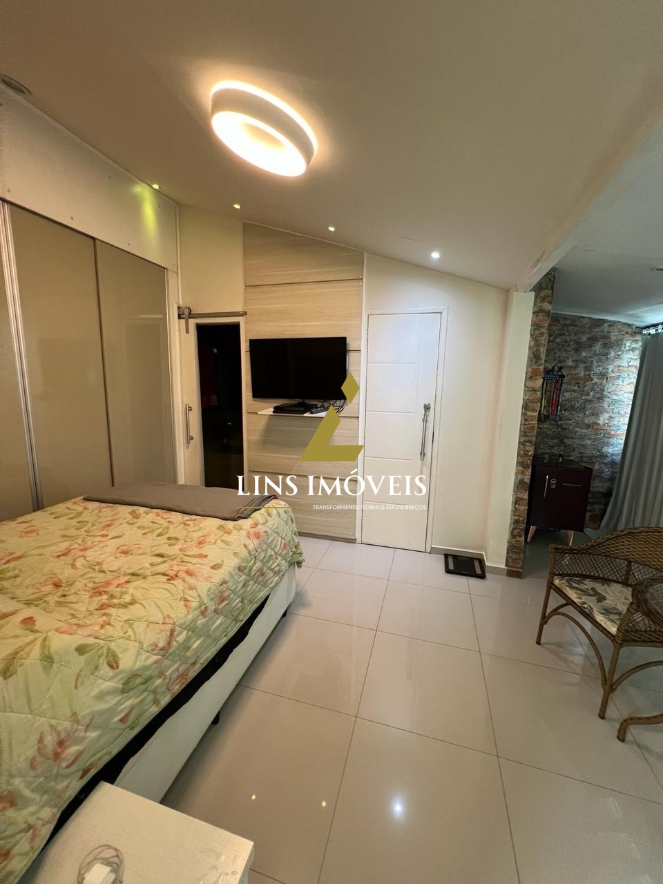A ampla sala em dois ambientes proporciona um espaço perfeito para momentos de convívio. O piso em porcelanato adiciona elegância ao ambiente, e os armários nos quartos, cozinha e banheiros garantem praticidade e organização.